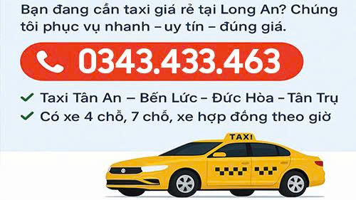 Taxi Long An phục vụ tại KV Tỉnh Long An và các tỉnh thành lân cận